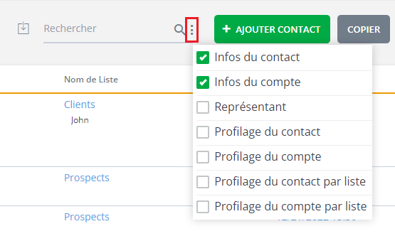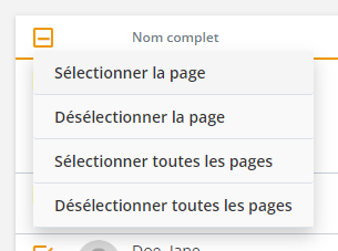 Vous pouvez désormais sélectionner ou désélectionner les contacts/comptes de la page active ou encore sélectionner ou désélectionner les contacts/comptes de toutes les pages en même temps.