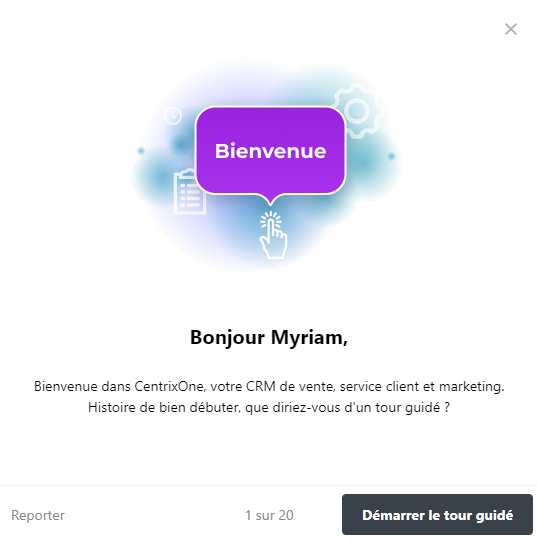 Chaque module de CentrixOne offre maintenant un tour guidé interactif pour vous expliquer les notions de base en lien avec ce module.